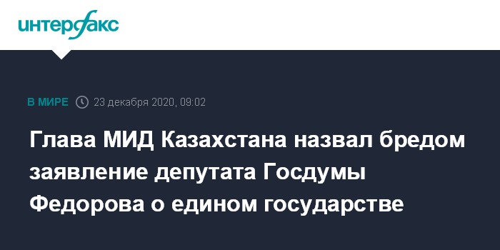 Глава МИД Казахстана назвал бредом заявление депутата Госдумы Федорова о едином государстве