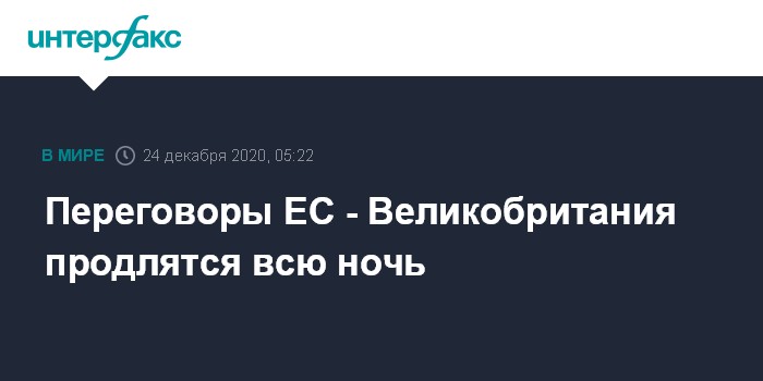 Москва. 24 декабря. INTERFAX.RU - Официальный представитель Европейской комиссии Эрик Мамер написал в ночь на четверг в твиттере, что переговоры о будущих отношениях Евросоюза и Великобритании будут продолжаться ночью.