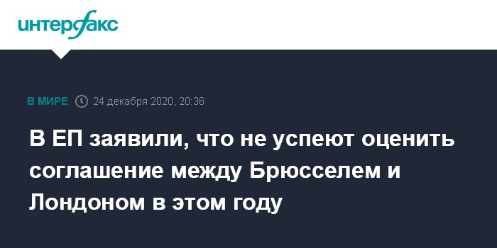 В ЕП заявили, что не успеют оценить соглашение между Брюсселем и Лондоном в этом году