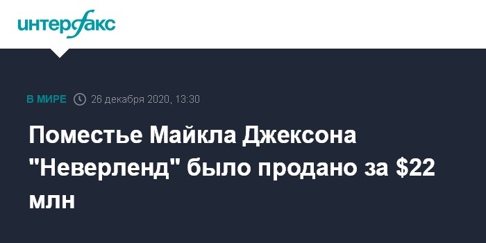 Москва. 26 декабря. INTERFAX.RU - У поместья покойного американского певца Майкла Джексона появился новый владелец.