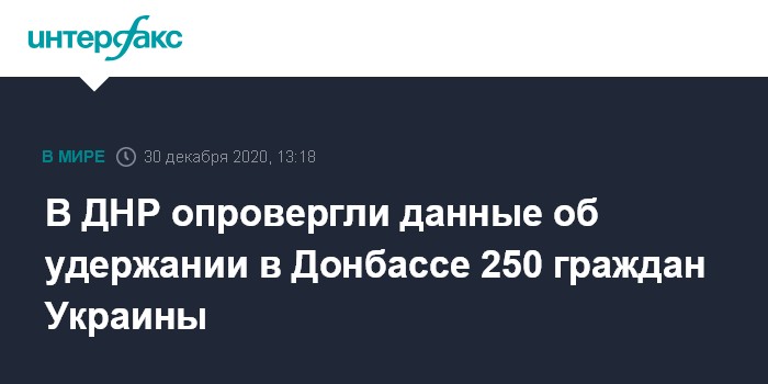 Москва. 30 декабря. INTERFAX.RU - Информация о том, что самопровозглашенные республики Донбасса удерживают свыше 250 граждан Украины, не соответствует действительности, заявила уполномоченный по правам человека в Донецкой народной республике (ДНР) Дарья Морозова.