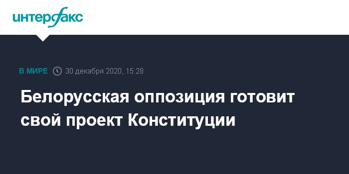 Москва. 30 декабря. INTERFAX.RU - Белорусская оппозиция имеет черновой вариант Конституции, подготовлен также проект избирательного кодекса, сообщил журналистам в среду представитель экс-кандидата в президенты Светланы Тихановской по вопросам конституционной реформы Анатолий Лебедько.