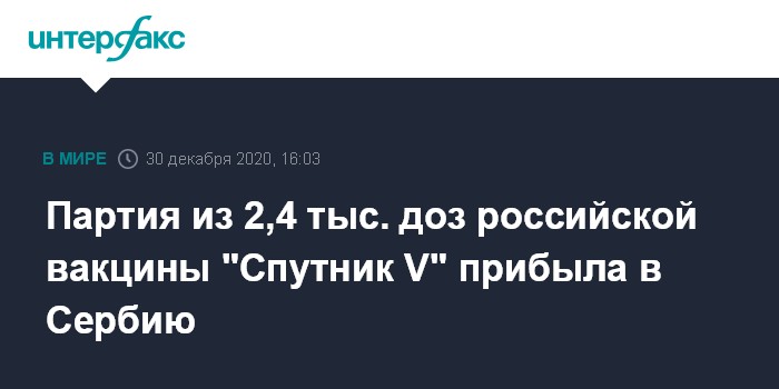 Партия из 2,4 тыс. доз российской вакцины "Спутник V" прибыла в Сербию