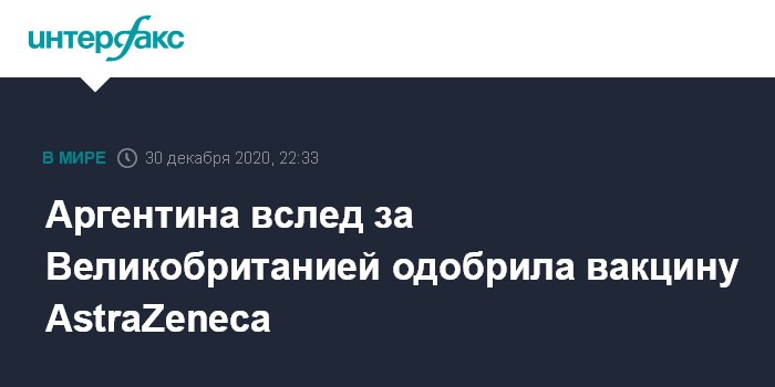 В заявлении отмечается, что вакцина одобрена для использования в чрезвычайных ситуациях. Аргентина стала второй после Великобритании страной в мире, разрешившей применение "оксфордской" вакцины.