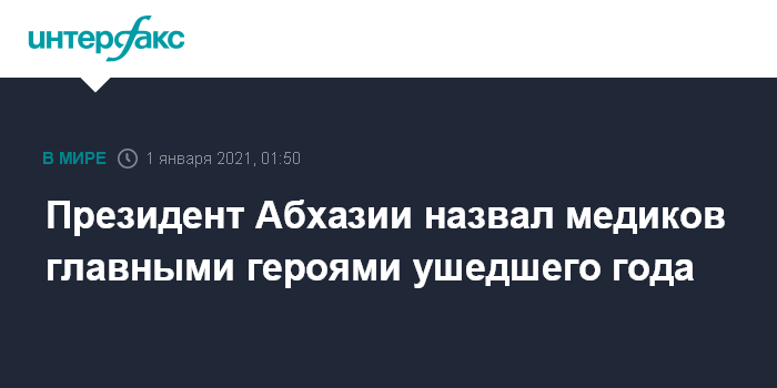 Сухум. 1 января. INTERFAX.RU - Президент Абхазии Аслан Бжания во время новогоднего поздравления назвал главными героями ушедшего года медицинских работников, находящихся на переднем крае борьбы с эпидемией.