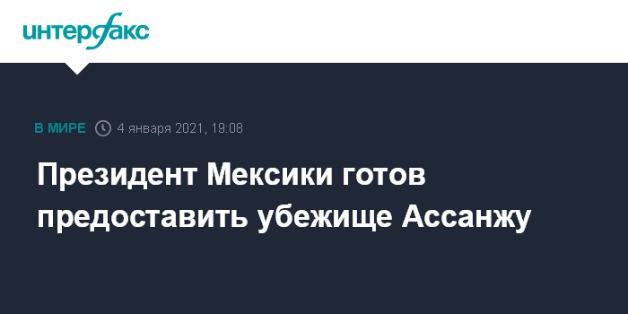 Москва. 4 января. INTERFAX.RU - Президент Мексики Андрес Мануэль Лопес Обрадор в понедельник выразил готовность предоставить политическое убежище основателю WikiLeaks Джулиану Ассанжу.