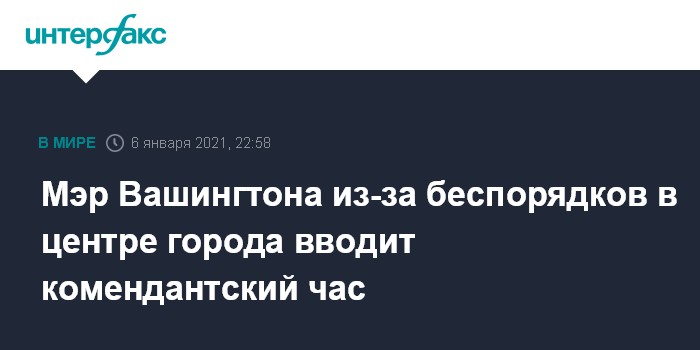 "Сегодня я распорядилась ввести комендантский час в Округе Колумбия с 18:00 по местному времени в среду, 6 января, до 06:00 утра четверга, 7 января", - написала Баузер в твиттере.