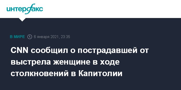 Москва. 6 января. INTERFAX.RU - Женщина получила огнестрельное ранение в область груди в ходе столкновений на территории Капитолия США, сообщает CNN с ссылкой на два источника.