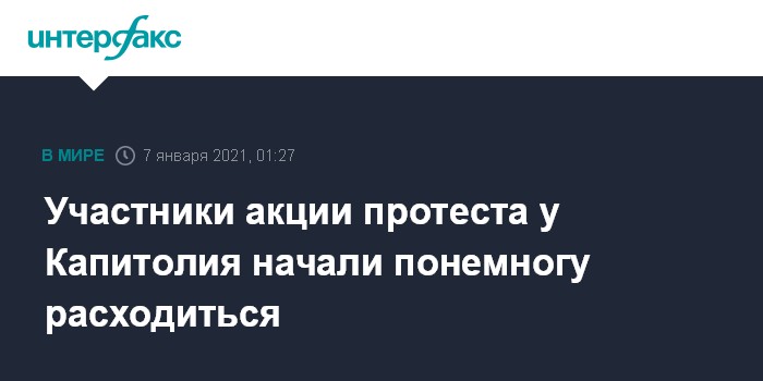 Москва. 7 января. INTERFAX.RU - Часть демонстрантов, проводивших акцию протеста у здания конгресса США, покинула это мероприятие, передаёт американское телевидение.