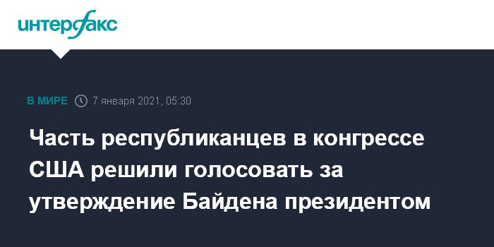 Часть республиканцев в конгрессе США решили голосовать за утверждение Байдена президентом