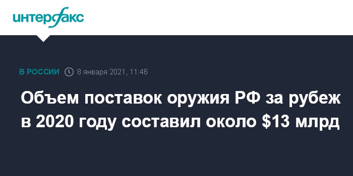 Объем поставок оружия РФ за рубеж в 2020 году составил около $13 млрд