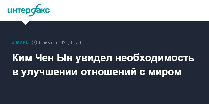 Москва. 8 января. INTERFAX.RU - Лидер КНДР Ким Чен Ын сказал о необходимости улучшения отношений с другими странами мира, передает агентство Yonhap.