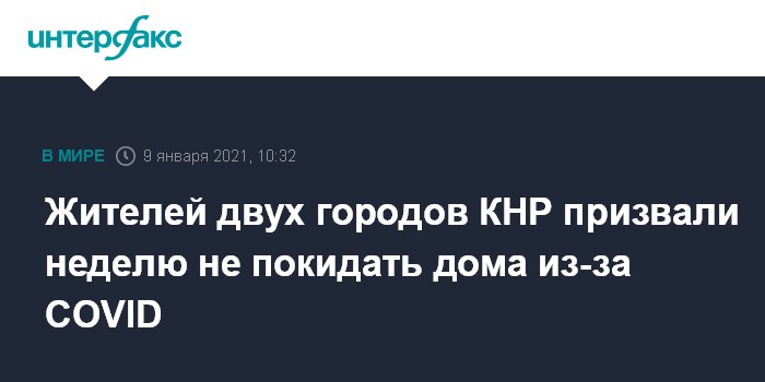 Москва. 9 января. INTERFAX.RU - Китайские власти в связи со вспышкой коронавируса COVID-19 в провинции Хэбэй призвали жителей двух городов к югу от Пекина - Шицзячжуана и Синтая - в течение семи дней не выходить из дома, передает в субботу агентство Associated Press.