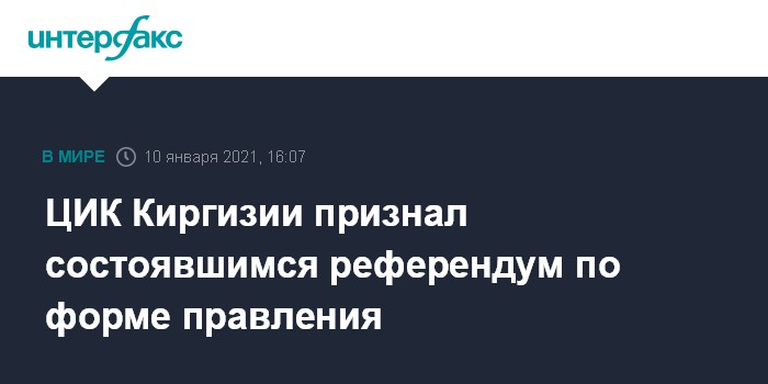 Москва. 10 января. INTERFAX.RU - Референдум по определению формы правления в Киргизии признан состоявшимся, сообщил ЦИК республики.