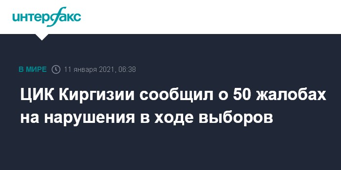Москва. 11 января. INTERFAX.RU - 50 сообщений о нарушениях избирательного процесса поступило в день голосования на досрочных выборах президента Киргизии в минувшее воскресенье, сообщил член ЦИК Киргизии Тынчтык Шайназаров на брифинге в понедельник.