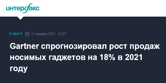 Москва. 11 января. INTERFAX.RU - В 2021 году расходы конечных пользователей на носимые электронные устройства вырастут на 18,1% - до $81,5 млрд, прогнозируют аналитики исследовательской компании Gartner.