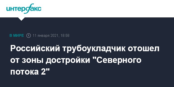 Москва. 11 января. INTERFAX.RU - Российский трубоукладчик "Академик Черский" после недели пребывания в датских экономических водах, где предстоит достроить морской газопровод "Северный поток 2", покидает территорию прохождения магистрали и полным ходом идет на восток, свидетельствуют данные международной системы позиционирования морских судов.