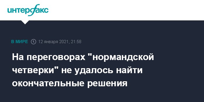 Москва. 12 января. INTERFAX.RU - Переговоры представителей "нормандской четверки" по урегулированию ситуации в Донбассе завершились в Берлине во вторник вечером, сообщил журналистам представитель посольства РФ в ФРГ.
