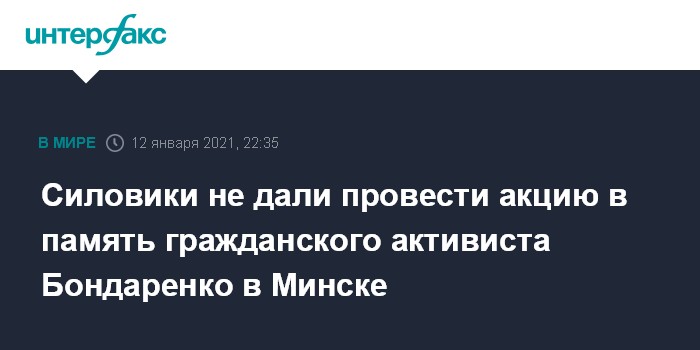 Москва. 12 января. INTERFAX.RU - Силовики не дали провести акцию в память гражданского активиста Романа Бондаренко на "площади перемен" в Минске.