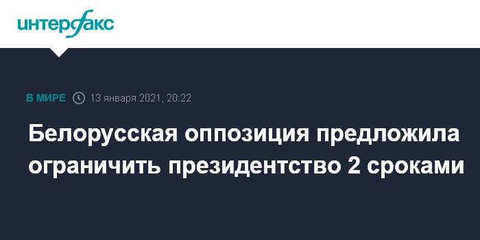 Москва. 13 января. INTERFAX.RU - Представители экс-кандидата в президенты Белоруссии, лидера оппозиции Светланы Тихановской по конституционной реформе работают над проектом новой Конституции, чтобы представить его на народное обсуждение, в числе предложений - ограничить президентство двумя сроками по 4 года.