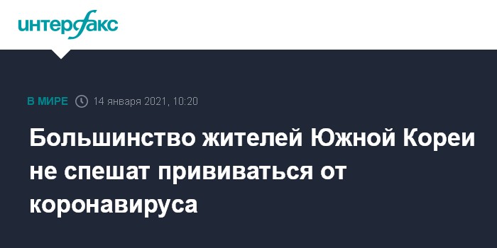 Москва. 14 января. INTERFAX.RU - В Южной Корее большинство граждан не спешат делать прививку от COVID-19, потому что хотят сначала посмотреть, как она работает на других людях, сообщают в четверг южнокорейские СМИ со ссылкой на опрос Сеульского университета.