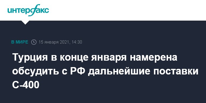Москва. 15 января. INTERFAX.RU - Власти Турции планируют в конце января обсудить с Россией вопрос о возможных дальнейших поставках систем ПВО С-400, заявил в пятницу турецкий президент Реджем Тайип Эрдоган.