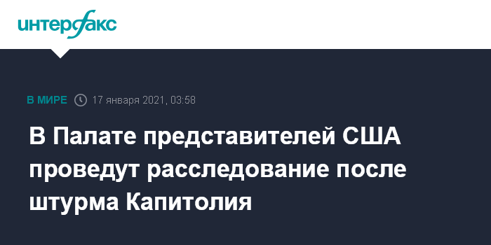В Палате представителей США проведут расследование после штурма Капитолия