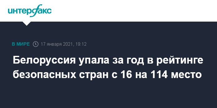 Белоруссия упала за год в рейтинге безопасных стран с 16 на 114 место