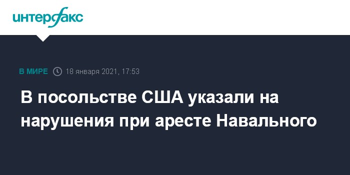 Ранее посол США в Москве Джон Салливан назвал задержание Навального "политизированным" событием и очередной атакой на оппозицию и критиков российской власти. Он пообещал, что мировое сообщество будет следить за тем, как с Навальным будут обращаться в СИЗО, и напомнил, что российское правительство несет ответственность за здоровье и безопасность политика.