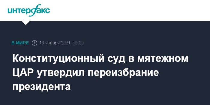 Москва. 18 января. INTERFAX.RU - Конституционный суд ЦАР в понедельник утвердил переизбрание президента страны Фостена Арканжа Туадеры, сообщают франкоязычные СМИ.