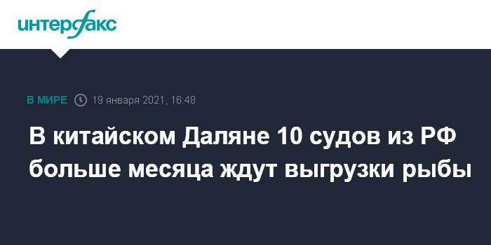 Москва. 19 января. INTERFAX.RU - Больше месяца 10 российских судов ожидают выгрузки рыбы в китайском порту Далянь, который из-за COVID-19 закрыт для приема иностранных судов.