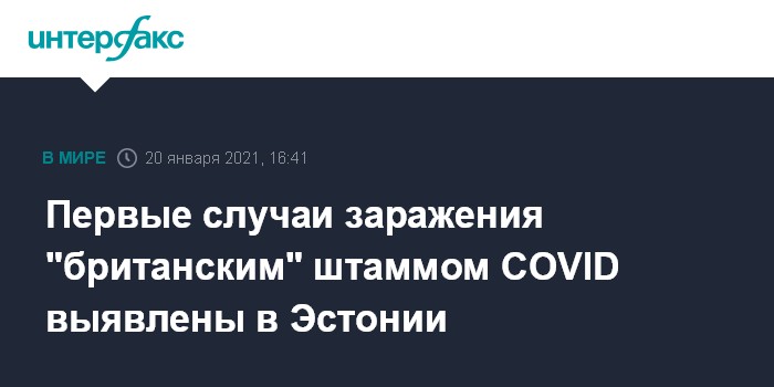 Москва. 20 января. INTERFAX.RU - В Эстонии выявлены три первых случая заражения "британским" штаммом коронавируса, сообщил в среду Департамент здоровья страны.