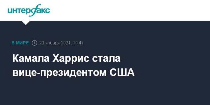 Москва. 20 января. INTERFAX.RU - Бывшая сенатор Камала Харрис приняла присягу на церемонии в Вашингтоне и, таким образом, стала вице-президентом США, сообщает CNN. Она - первая женщина в американской истории, занявшая этот пост.