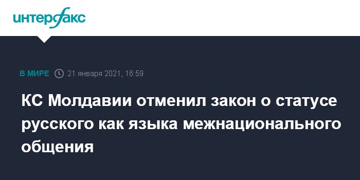 Москва. 21 января. INTERFAX.RU - Конституционный суд Молдавии признал неконституционным закон о функционировании языков и статусе русского языка. Такое решение КС принял в четверг по запросу трех депутатов от оппозиции.