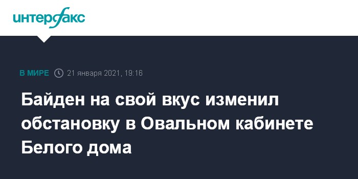 Москва. 21 января. INTERFAX.RU - Президент США Джо Байден, заняв Овальный кабинет в Белом доме, сменил в нем обстановку на свой вкус, сообщают в четверг американские СМИ.