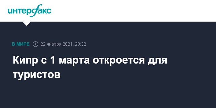 Москва. 22 января. INTERFAX.RU - Кипр откроет границы для российских туристов 1 марта, прохождение ими карантина не потребуется, если по прибытии на остров тест на коронавирус окажется отрицательным, сообщает газета Cyprus Mail со ссылкой на заместителя министра туризма страны Савваса Пердиоса.