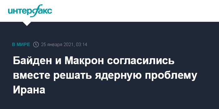 Москва. 25 января. INTERFAX.RU - Президенты Франции и США, Эммануэль Макрон и Джо Байден, в ходе телефонного разговора договорились вместе работать над решением проблем на Ближнем Востоке, сообщает Елисейский дворец.