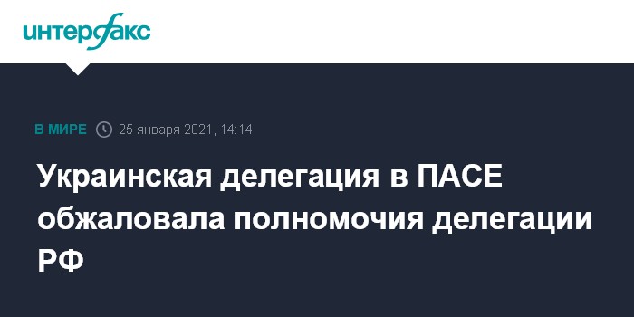 Москва. 25 января. INTERFAX.RU - Украинская делегация в Парламентской ассамблее Совета Европы обжаловала полномочия российской делегации, сообщил член украинской делегации в ПАСЕ, народный депутат фракции "Европейская солидарность" Алексей Гончаренко.
