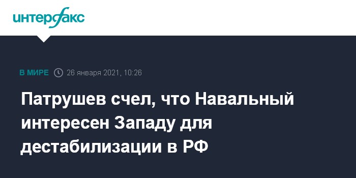 Москва. 26 января. INTERFAX.RU - Секретарь Совета безопасности России Николай Патрушев считает, что Запад заинтересован в оппозиционном политике Алексее Навальном для дестабилизации обстановки в России.