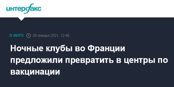 Москва. 26 января. INTERFAX.RU - Закрытые уже почти год танцполы в ночных клубах Франции в недалеком будущем могут начать использовать в качестве центров вакцинации от коронавируса COVID-19, сообщают французские СМИ.