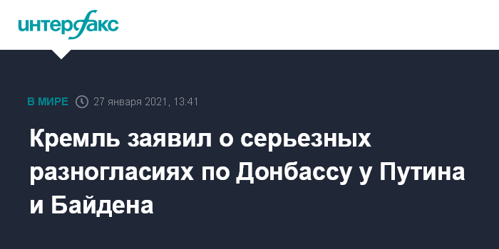 Кремль заявил о серьезных разногласиях по Донбассу у Путина и Байдена