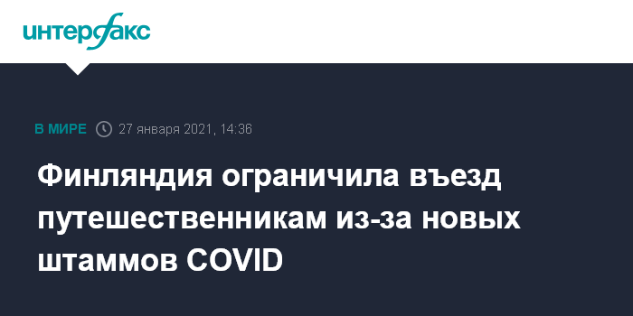Москва. 27 января. INTERFAX.RU - Финляндия ужесточает правила въезда на свою территорию для путешественников, чтобы не допустить распространение новых штаммов коронавируса, сообщают западные СМИ в среду.