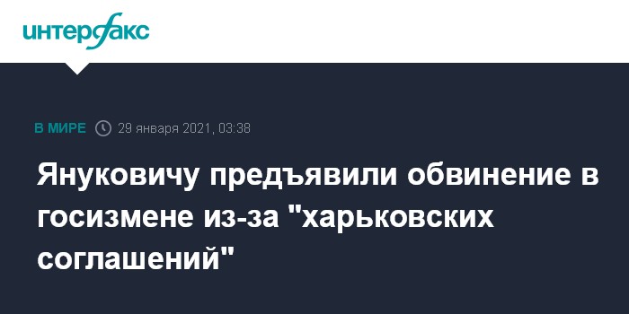 Москва. 29 января. INTERFAX.RU - Следователи Госбюро расследований Украины (ГБР) по согласованию с прокурорами Офиса генпрокурора уведомили о подозрении бывшего президента Украины в государственной измене за подписание "харьковских соглашений" в пользу России.