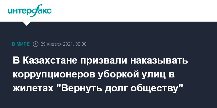 "В ряде стран ОЭСР в качестве основного или дополнительного наказания за коррупционные преступления довольно успешно применяют общественные работы. В частности, в Великобритании практикуется надевать на осужденных яркие жилеты с надписью "вернуть долг обществу" и принуждать их к низкоквалифицированным уличным работам", - сказал Шпекбаев на заседании коллегии ведомства в пятницу.