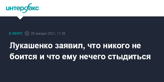 Москва. 29 января. INTERFAX.RU - Президент Белоруссии Александр Лукашенко во время встречи со студентами в пятницу заявил, что ему нечего стыдиться за любые свои поступки.