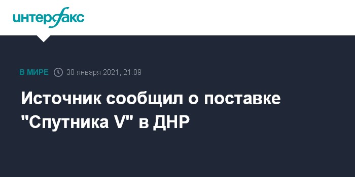 Москва. 30 января. INTERFAX.RU - Вакцина от коронавируса российского производства "Спутник V" доставлена в самопровозглашенную Донецкую народную республику, заявил "Интерфаксу" источник в таможенной службе ДНР.
