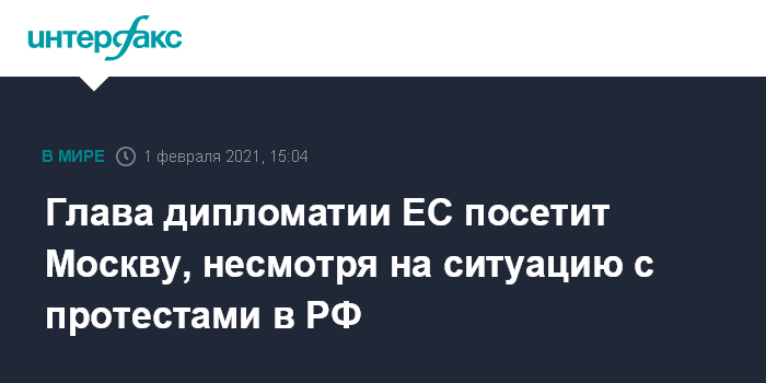4-5 февраля состоится первый визит Борреля в Россию в качестве высокого представителя ЕС визит. Ранее он выразил сожаление в связи с реакцией российских властей на протестные акции сторонников арестованного политика Алексея Навального, состоявшиеся в воскресенье, 31 января, в России.