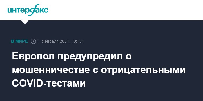Европол предупредил о мошенничестве с отрицательными COVID-тестами