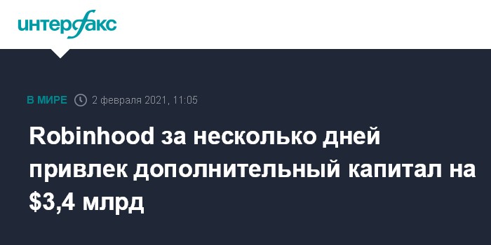 Москва. 2 февраля. INTERFAX.RU - Оператор платформы для торговли акциями Robinhood Markets, который в конце прошлой недели привлек капитал на сумму $1 млрд, в понедельник получил от своих акционеров еще $2,4 млрд.