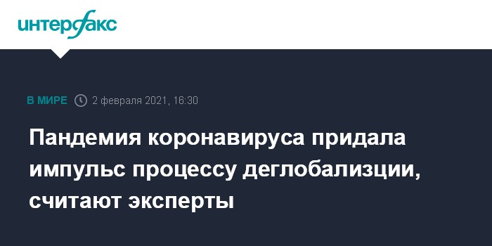 Пандемия коронавируса придала импульс процессу деглобализции, считают эксперты